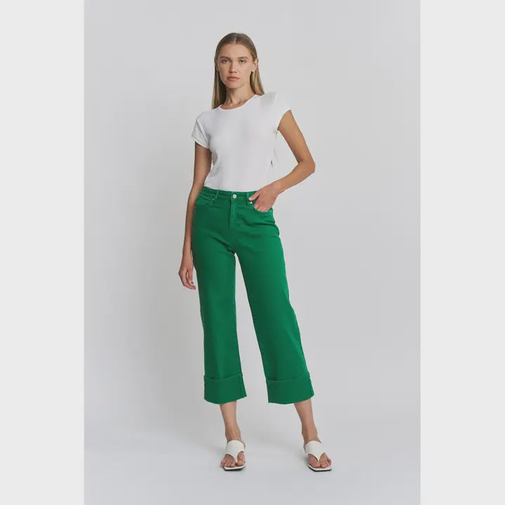 - Wide crop leg with cuffed hem for a polished, on-trend look
